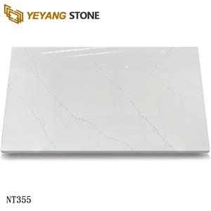 Quartz Code: NT355 Quartz Collection: Calacatta Quartz Slabs Quartz Slabs Color: White with fine gray veining Style: Minimal marble-look Perfect for those who appreciate restraint and precision, NT355 offers timeless simplicity.