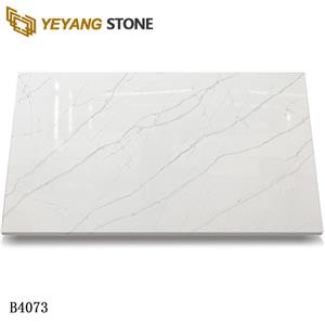 Quartz Code: B4073 Quartz Collection: Calacatta Quartz Slabs Quartz Slabs Color: White base with soft gray diagonal veining Style: Minimalist / modern classic Designed for simplicity and clarity, B4073 delivers a clean Calacatta aesthetic that works seamlessly across kitchens, bathrooms, and commercial spaces.