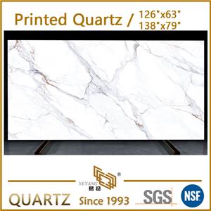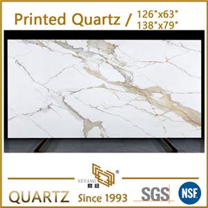 Golden Veins Withe Printed Quartz Slabs for Kitchen Countertop PQ0008
