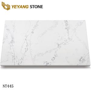 Quartz Code: NT445 Quartz Collection: Calacatta Quartz Quartz Slabs Color: White with Fine Grey Veins Style: Light Luxury NT445 Calacatta quartz slabs feature fine grey veining on white. Durable engineered quartz surface for kitchens and bathrooms.