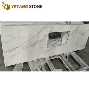 Project Name: Statuario White Cut-to-Size Quartz Kitchen Countertops Quartz Style: Calacatta Statuario Quartz Color: Gray, White Yeyang Stone Support: Customizable colors, patterns, finishes, egdes, shapes, thicknesses, etc.